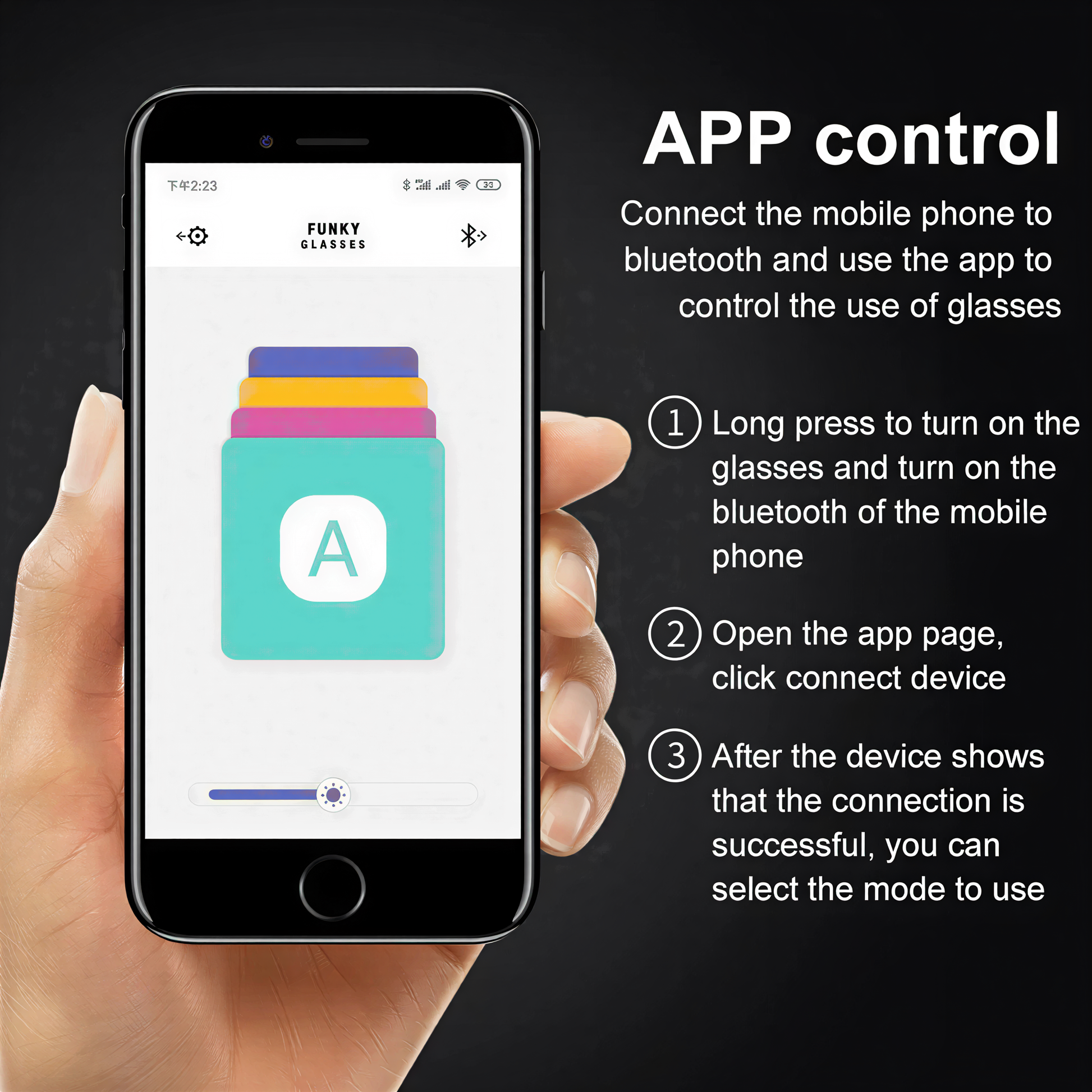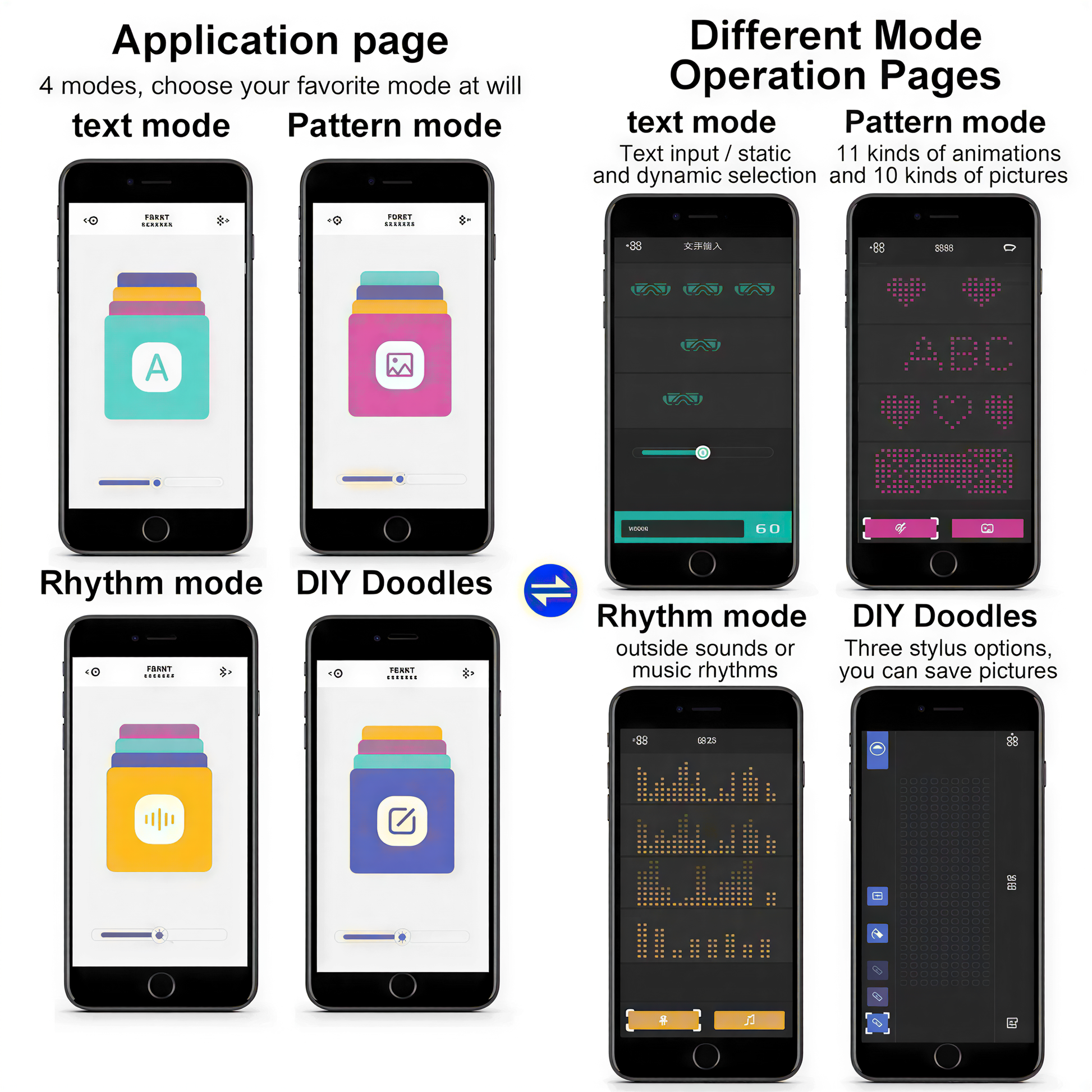 Bluetooth LED glasses with 200 LEDs across the front. Scroll any text, draw your own graffiti, flash through 31 animations, or let the microphone pick up the beat and react live. Funky Glasses app controls everything from your phone.